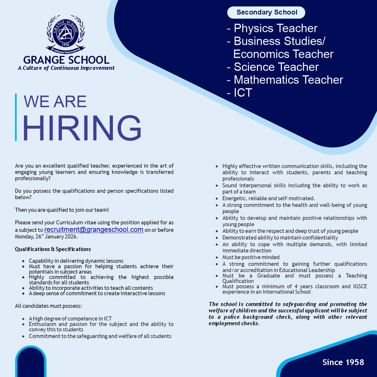 Grange School is a place my children have made great friends and memories and learned invaluable lessons that will stay with them forever.