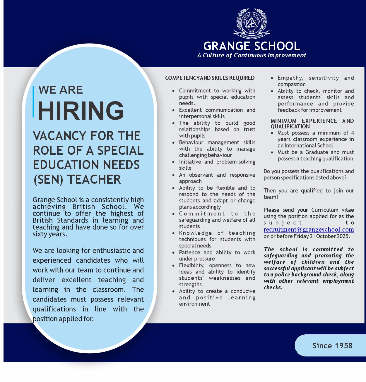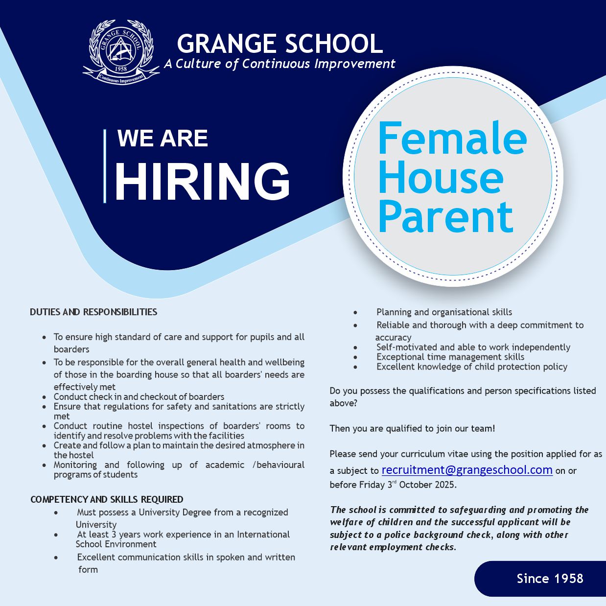 Grange School is a place my children have made great friends and memories and learned invaluable lessons that will stay with them forever.