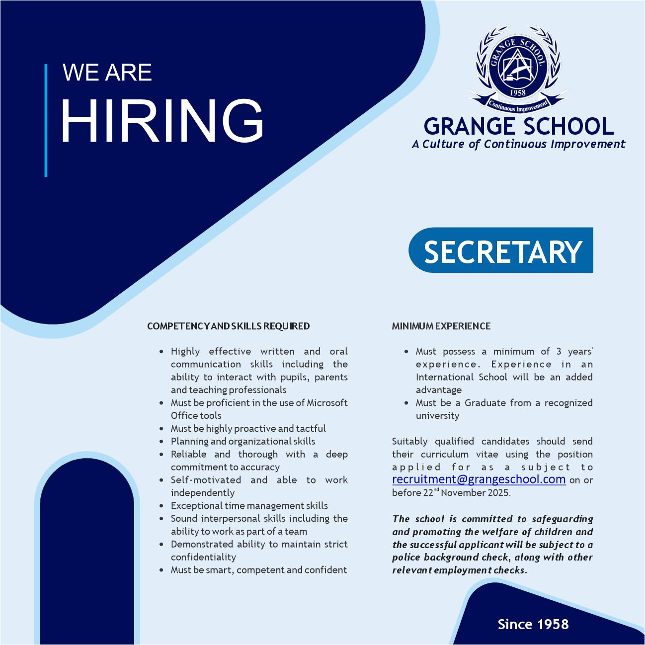 Grange School is a place my children have made great friends and memories and learned invaluable lessons that will stay with them forever.